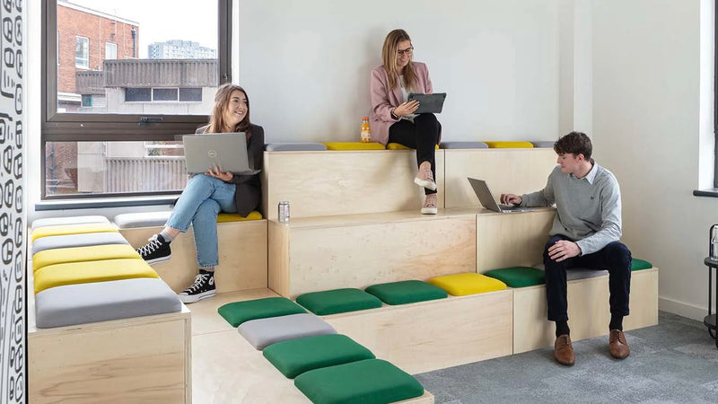We worked with tech company Too Good to Go to create this super stylish tiered seating area for their new London office.