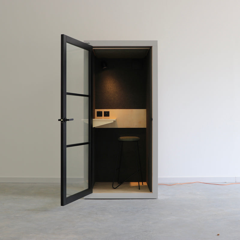 A phonebox booth, designed for one person to get some quiet focus. Great for taking calls, perfect for when deadlines loom.