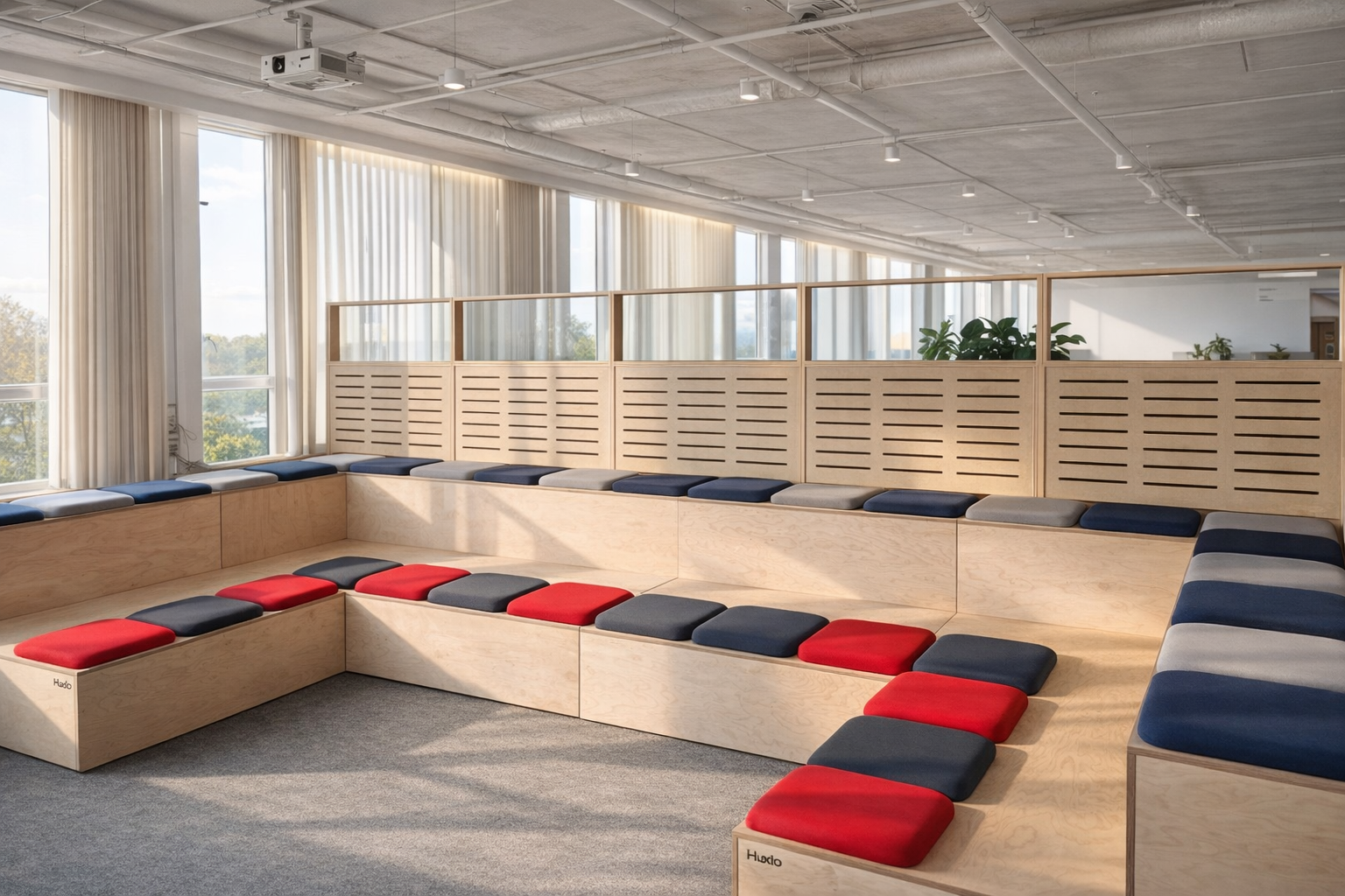 Our Basecamp range is designed to create tiered seating arrangements in semi-permanent locations. These modular seating units are freestanding to make bleachers seating quick to implement. You can choose from our list of standard products to create something unique to your space. Basecamp is the perfect solution for a presentation space that doubles as an informal lunch or catch-up spot.
