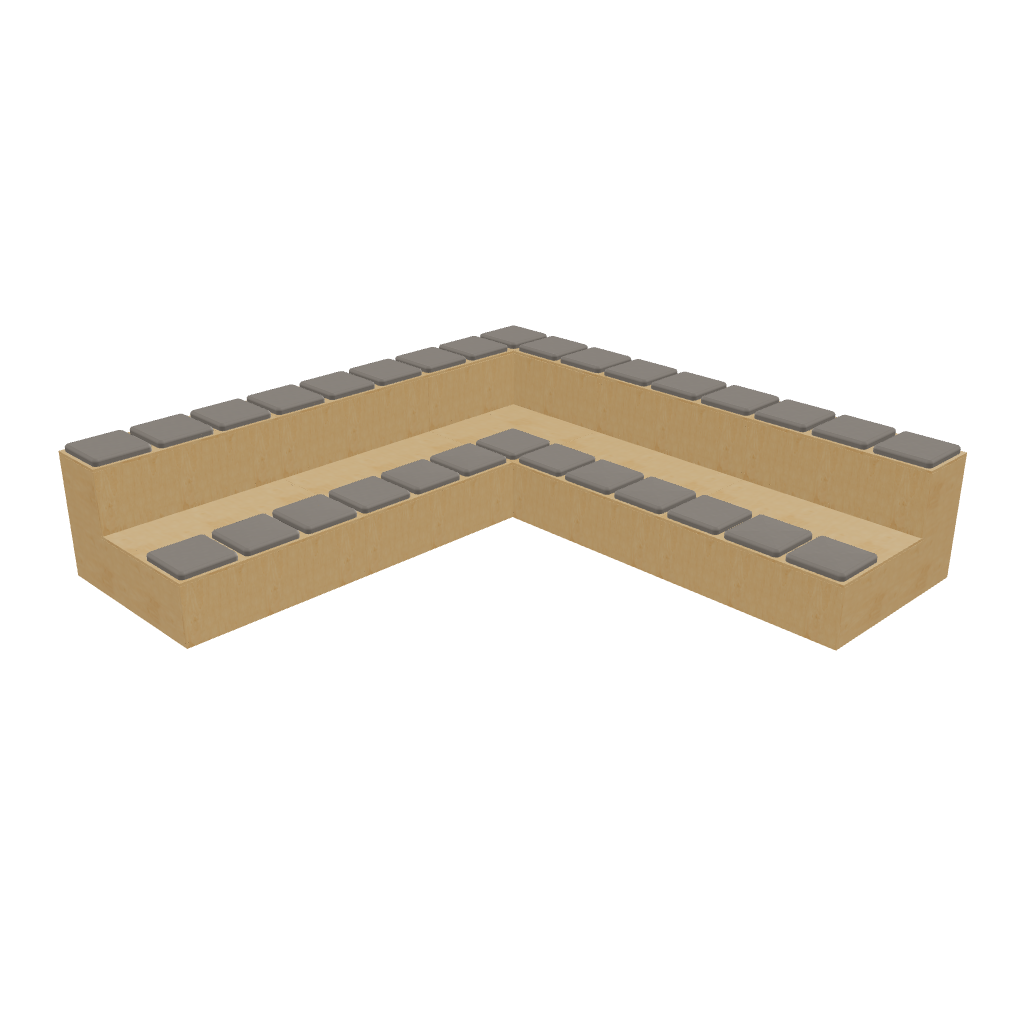 This medium L shape bleachers assembly can seat up to 26 over two tiers. It comprises of 5 Basecamp units that can be independantly moved around.