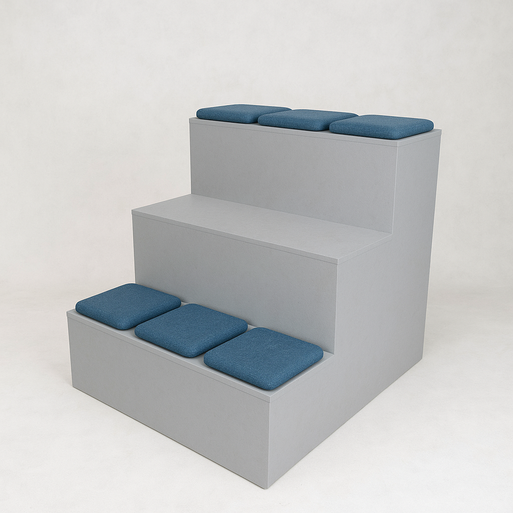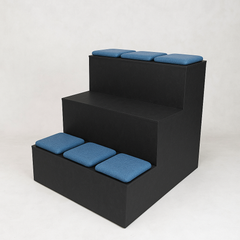 This tiered seating unit can accomodate up to 6 people across three tiers. It is freestanding and can be used in conjuction with our other products in the Basecamp range to create bespoke layouts that fit your space. Due to the height of the top tier, this product should be placed against a solid wall.