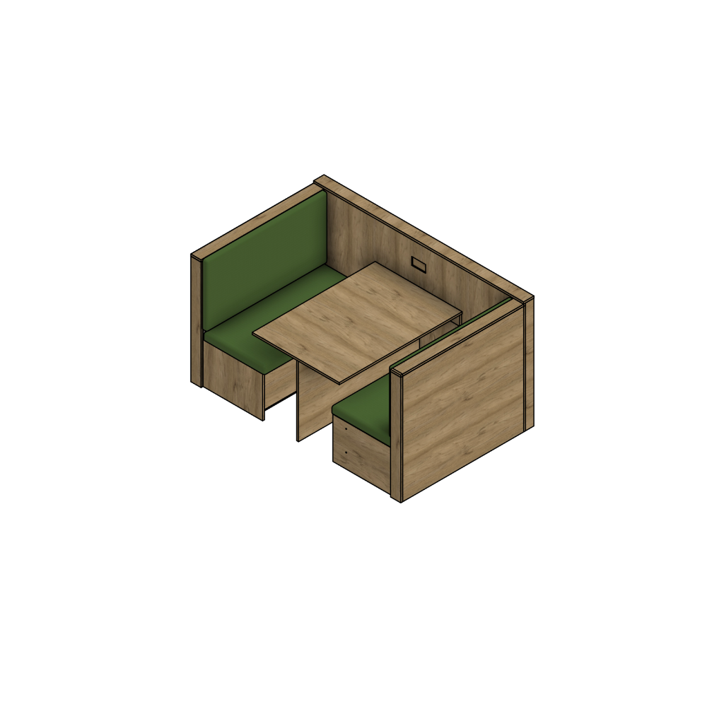 Koppi 1 is a single open booth that seats up to 4 people. It features fully upholstered seat and back pads in a huge range of fabrics. Internal cable routing for power maintains a clean appearance.