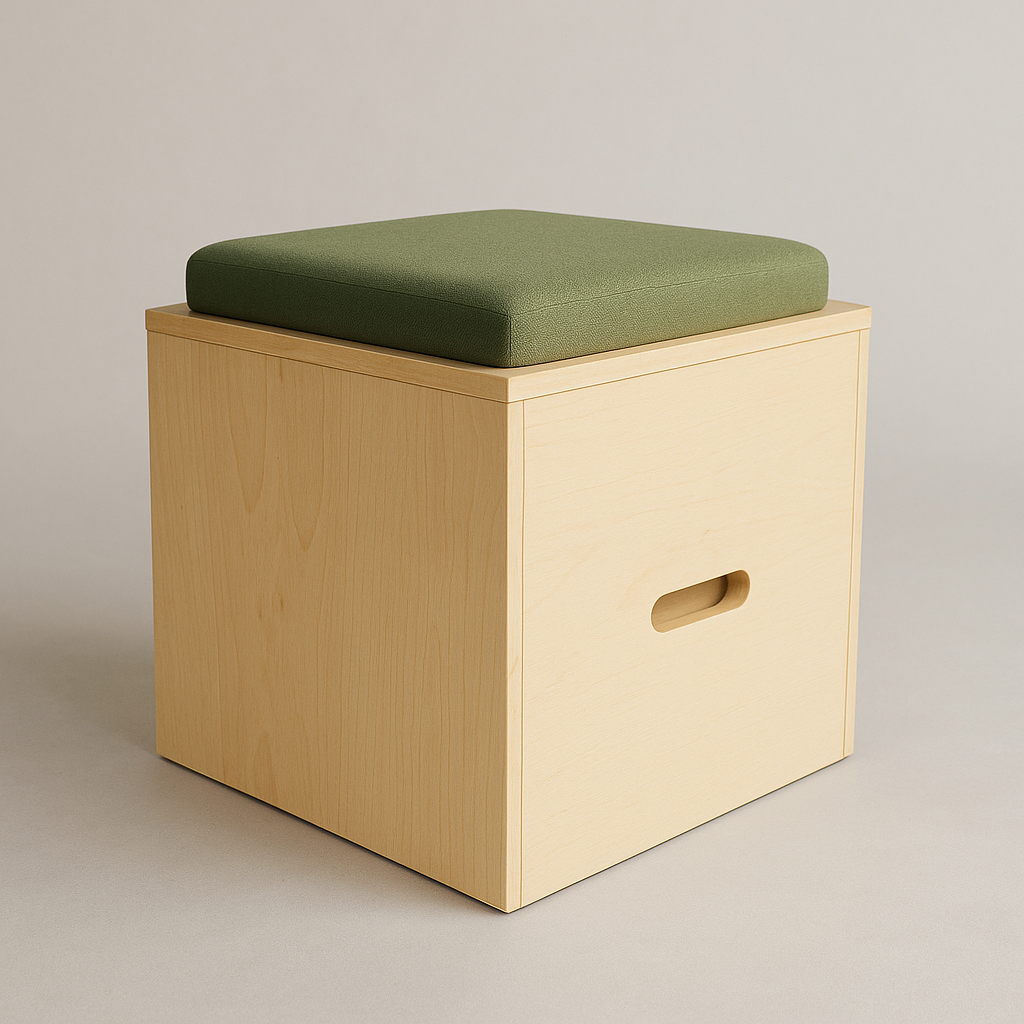 Lekplats 2 features an upholstered connecting pad which make them ideal for a top layer of tiered seating. They can also be used as standalone stools.
