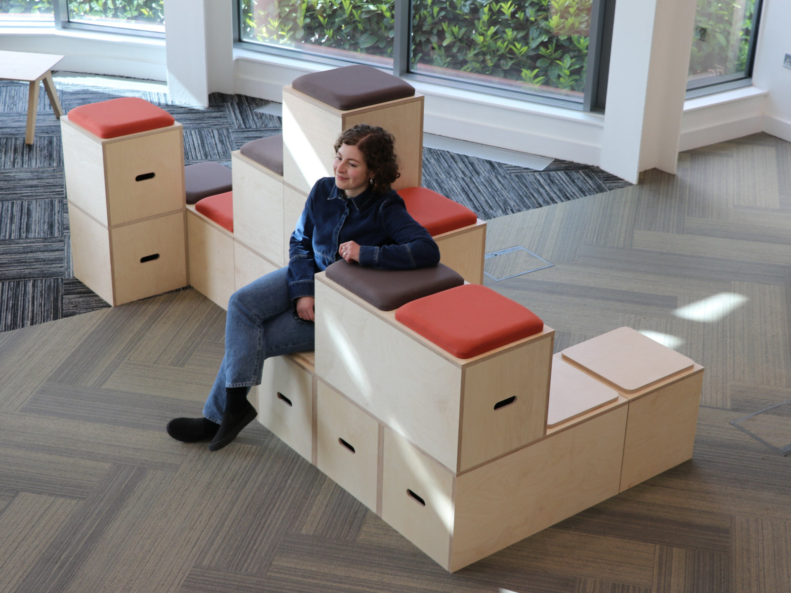 Lekplats are our stackable modular seating units. These products can be picked up and moved around by a single person. The unique pad design enables them to stack together like Lego. The Lekplats range is perfect for flexible spaces that require rearranging frequently. One day you might use the space to hold a company wide meeting, the next you can rearrange for breakout meetings.