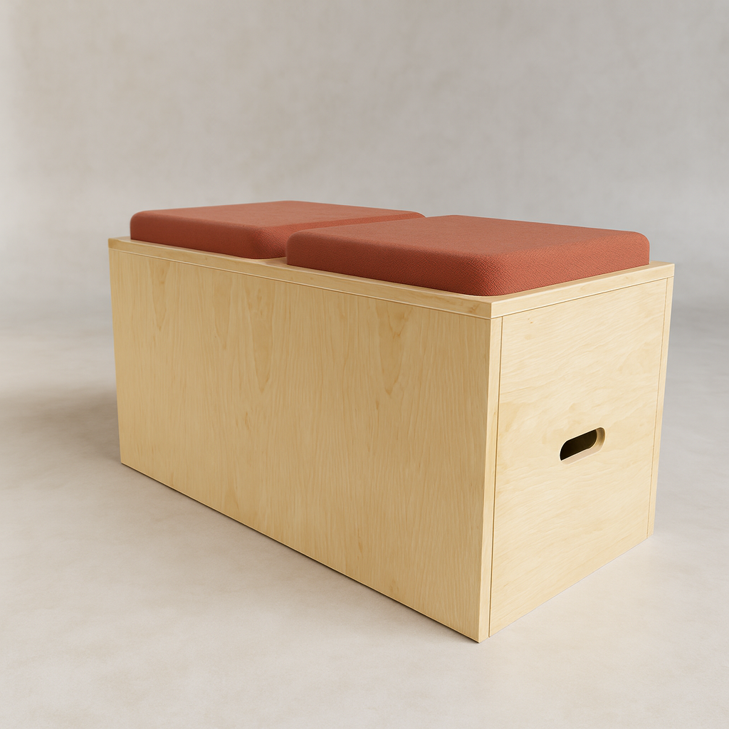 Lekplats 4 features upholstered connecting pads which make them ideal for a top layer of tiered seating. They can also be used as standalone stools.